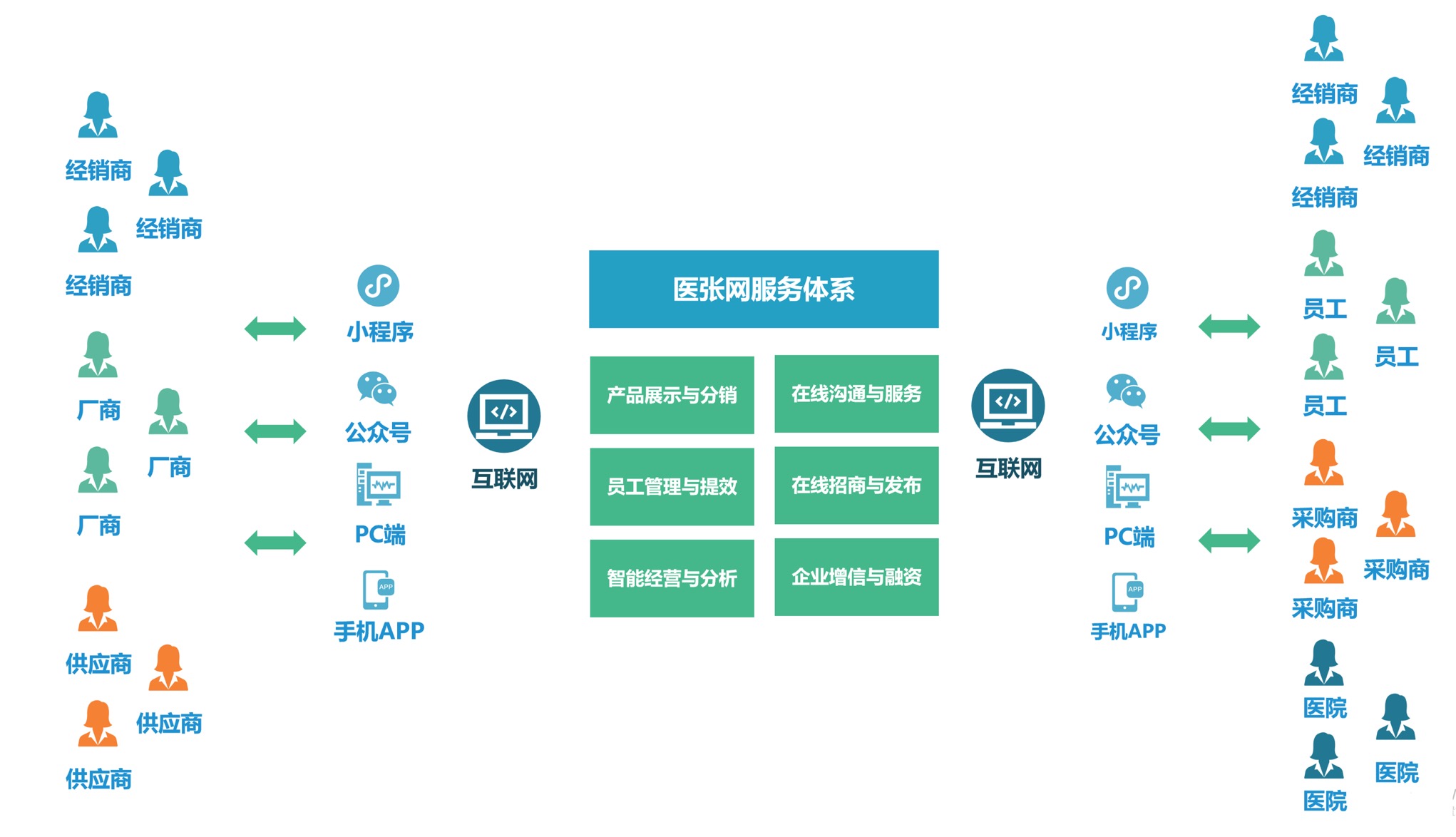 我们认为药、械是与医疗相关的,服务是与健康相关的,我们通过药械及服务的供给提升互联网医疗健康行业的运营能力以及营收能力。